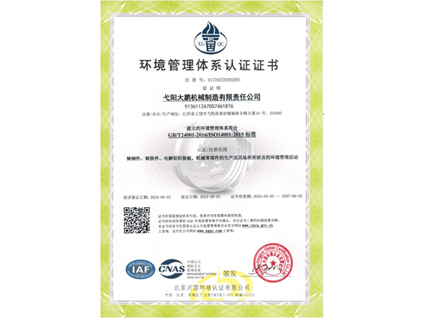 公司順利通過質量管理體系認證、環境體系認證、職業健康安全管理體系認證、環評。2015年5月獲國家工信委頒發的《鑄造企業準入條件》;2019年做了安全現狀評價;2020年取得了排污許可證。